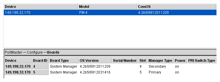 b. Make sure that the manager module in slot 4 is running ComOS 4.2. If it is not, upgrade this manager before going on to Step 2